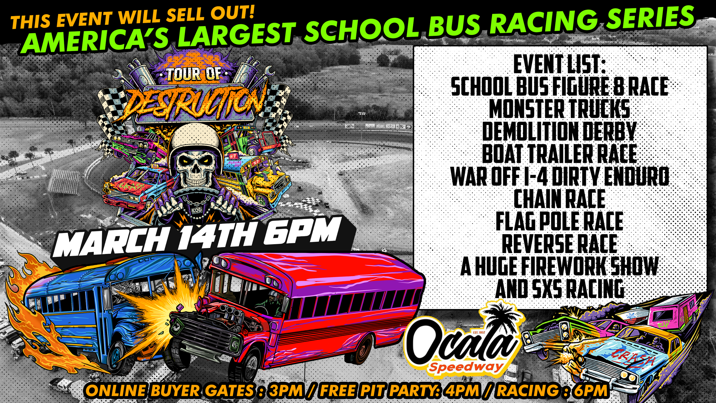 ONLINE BUYER GATES: 3PM / PIT PARTY: 4PM / RACING AT: 6PM