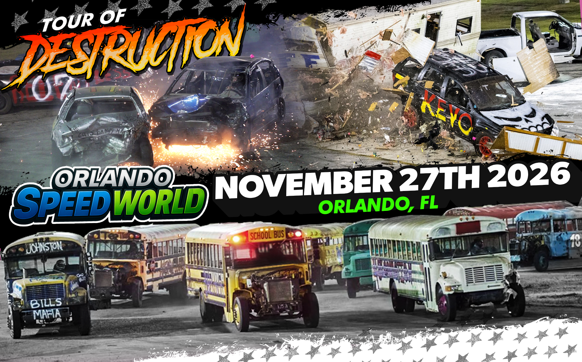 Tour of Destruction events run rain or shine, with safety as the top priority. In the event of cancellation or postponement, announcements will be made at the venue once a decision is finalized. If rescheduling is required, we will aim to run the event the following Saturday or at a later date of our choosing.