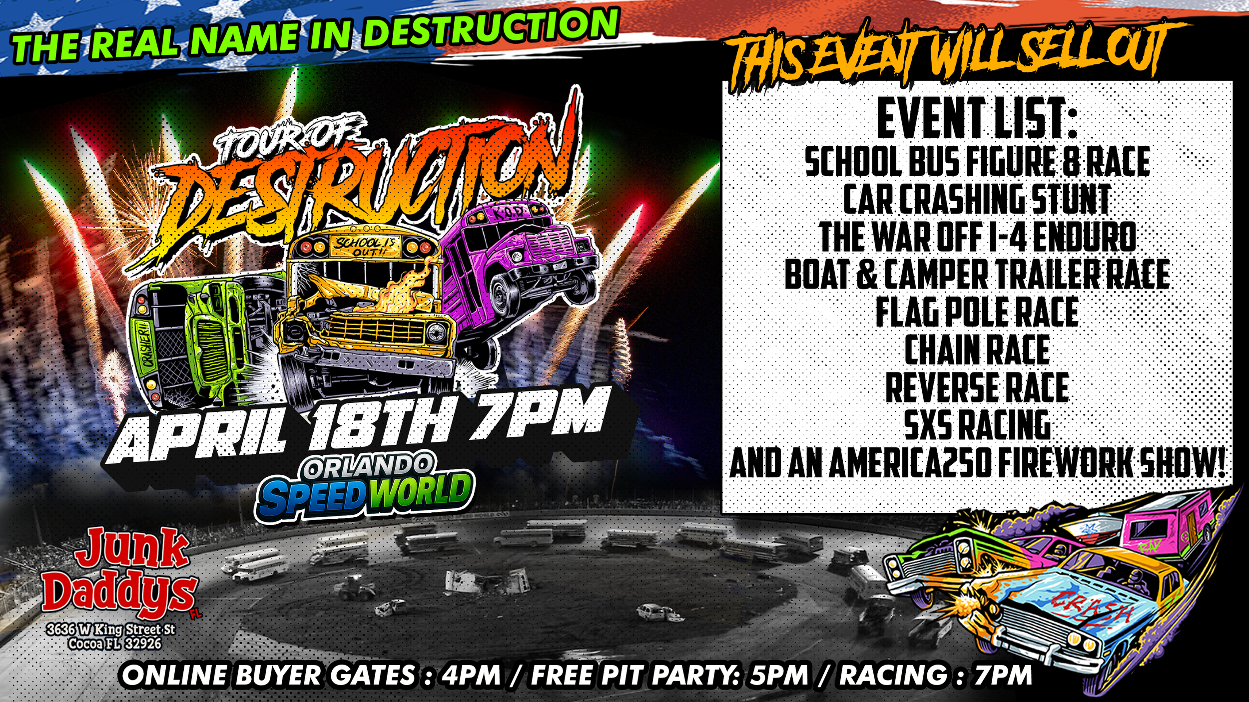 ONLINE BUYER GATES: 4PM / PIT PARTY: 5PM / RACING AT: 7PM