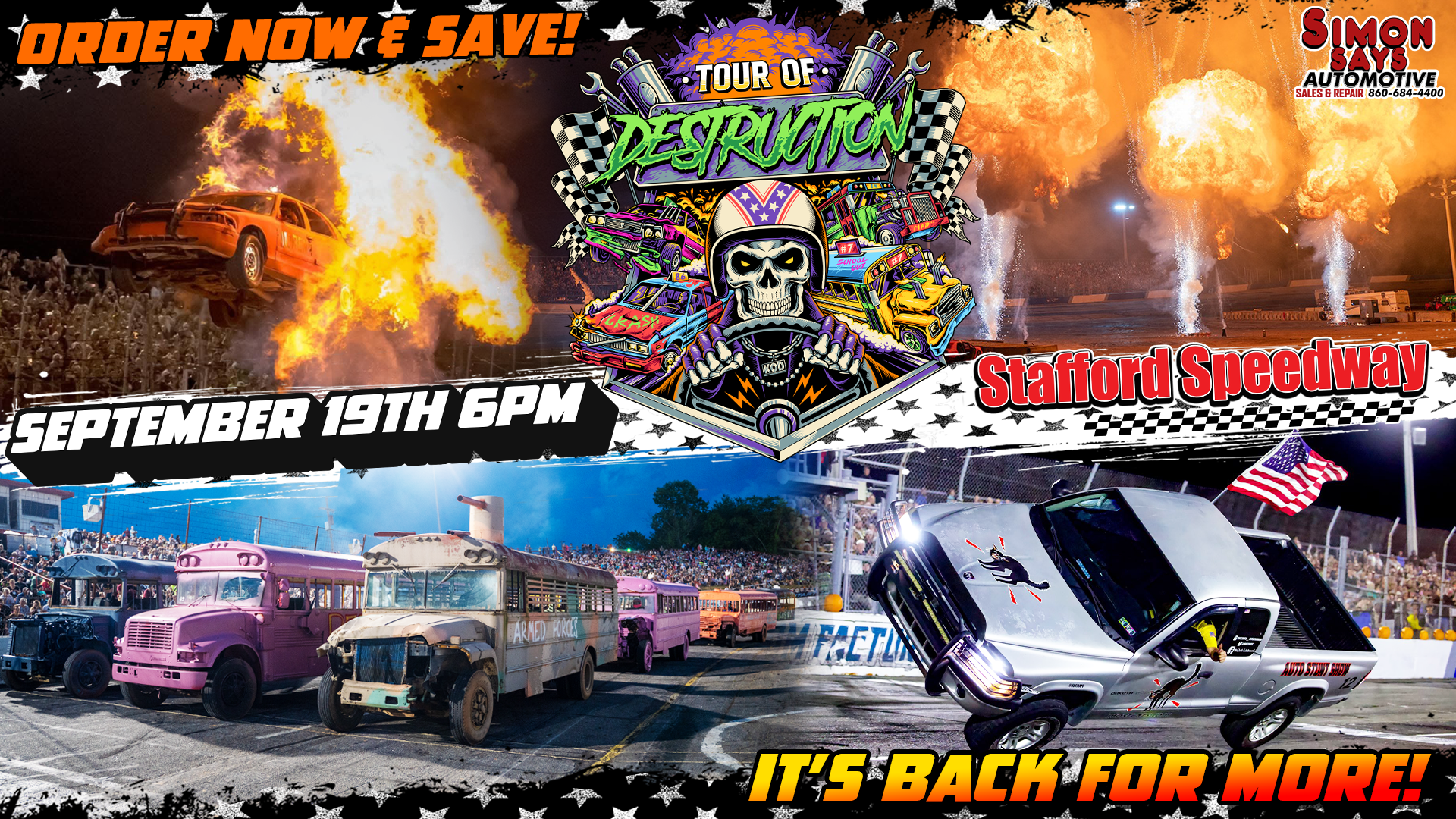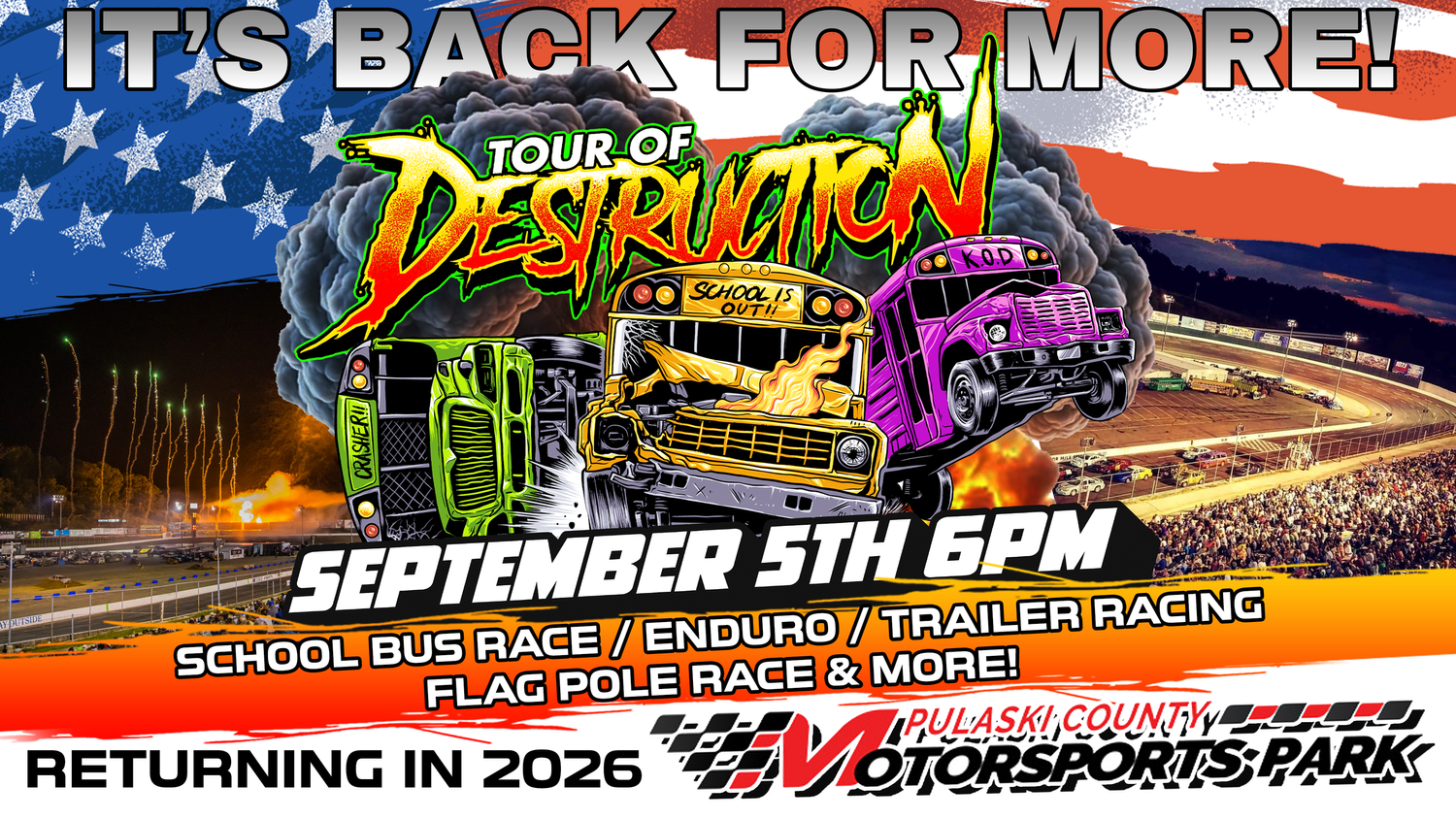 SCHOOL BUS FIGURE 8 RACE, LIGHTS OUT ENDURO, HALLOWEEN HEARSE RACE, TRAILER RACE, STUNTS & SO MUCH MORE DESTRUCTION!